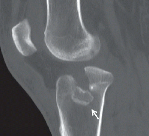 Epos C 2528 from epos.myesr.org Z tibial plateau view angling the tube 15 degree cephalad provides tangential view of tibial plateau. Fractures involving the medial tibial plateau may be associated with higher incidences of peroneal nerve or popliteal neurovascular. Motor vehicle accidents account for the majority of these fractures in younger individuals, but elderly patients with osteopenic bone may experience these after a simple fall.